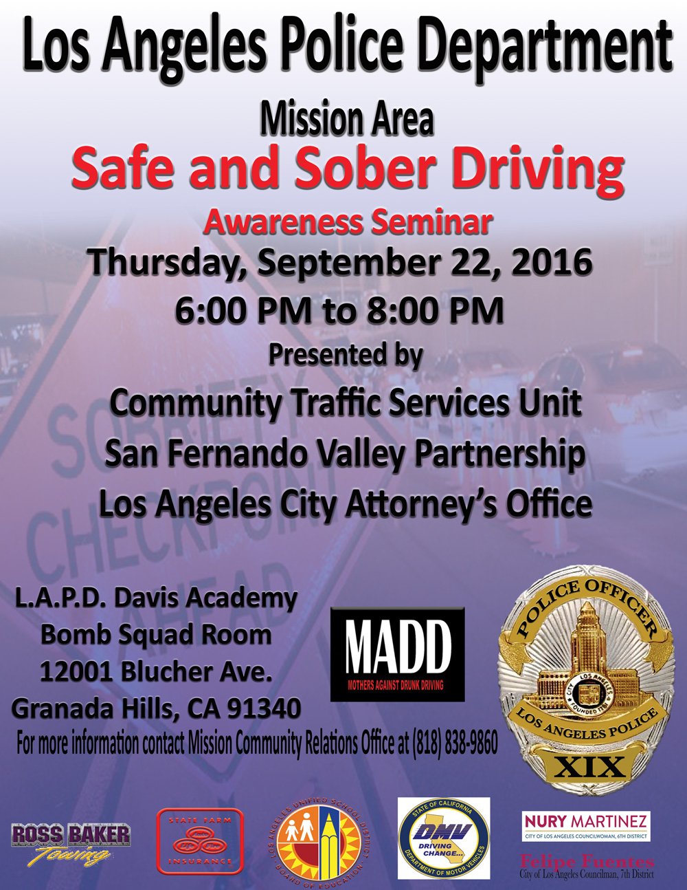 Thursday, September 22 6pm to 8pm LAPD Davis Academy – Bomb Squad Room 12001 Blucher Ave Granada Hills, CA 91340