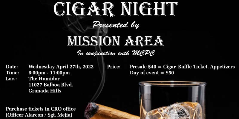 Price: Presale $40 = Cigar, Raffle Ticket, Appetizers